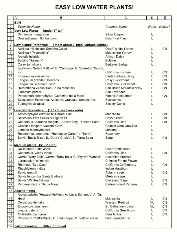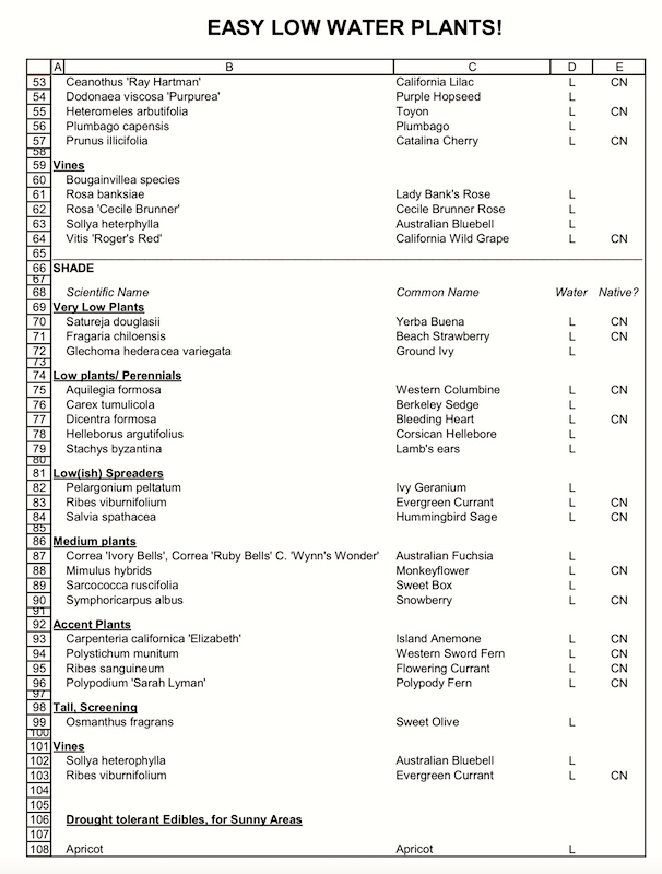 Bonus: low-water plants especially recommended by the City of Palo Alto. A check list (with a great many entries already discussed on this blog):