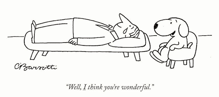 Dog as therapist (for human patient). A Charles Barsotti and two Randy Glasbergens: