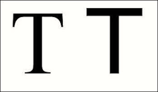 sign in some restaurants. Here enforced by a maître d’ who’s a (serifed) uppercase B. Suitably serifed uppercase diners fill the seats, while a shirted and shod but sans-serif uppercase T realizes he won’t be served.