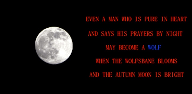 (#3) Quote from the 1941 movie The Wolf Man, just one step short of the full moon as the trigger for therianthropy (metamorphosis from human to animal form)