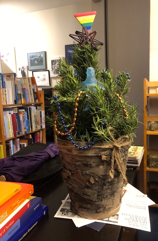 From Kim Darnell today, a Christmas tree, which she then decorated to suit my household: