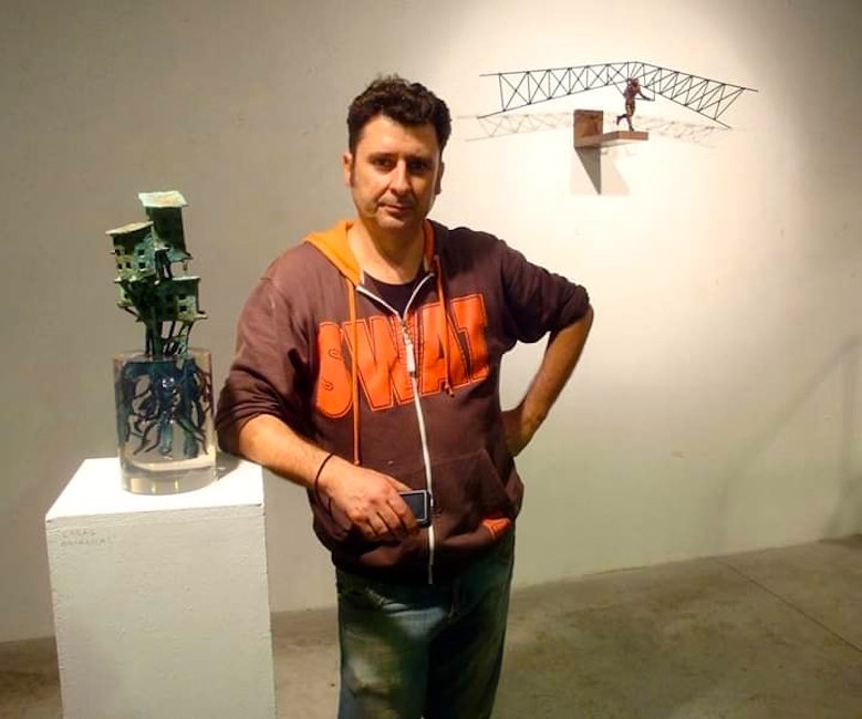 The formally educated artist [1994 fine arts degree, with specialization in sculpture, from Complutense University of Madrid] works and lives in Madrid, Spain where he produces his intricate pieces out of wrought iron, bronze, and occasionally resin. With a distinct, scientific feel, Reguera’s portfolio features human figures with roots sprouting out their feet, and others with tendrils snaking up and out in the place of a head. His wildlife sculptures are similar in their approach: exquisitely detailed with an attention to anatomical correctness that is apparent in every piece. Striking a balance between the sculptures’ free flowing appearance with his use of hard, unyielding material, Reguera continually produces visually intriguing artwork.