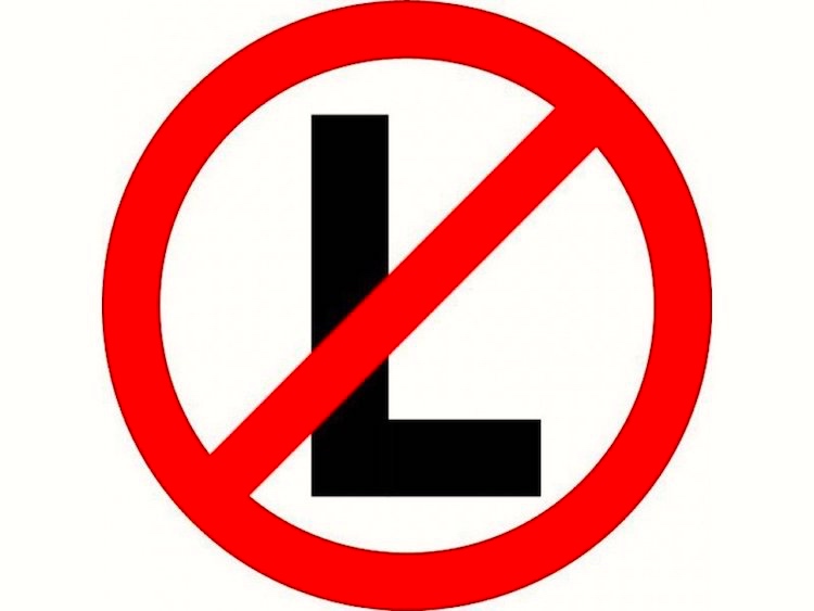 (I haven’t seen the “No L” symbol attributed to any specific source, and it seems likely that many people hit on the idea independently, once the convention of a slash for prohibitions became widespread.)