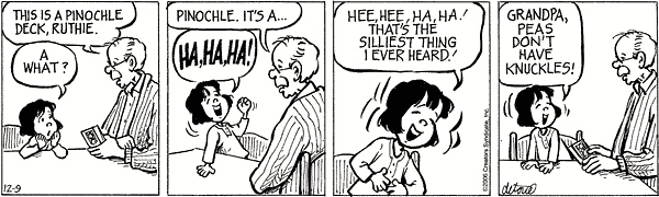 The One Big Happy from 12/9, in which Ruthie is rotfl over the name of a card game: