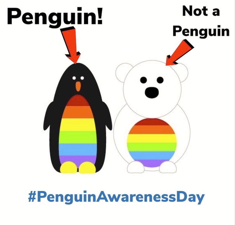 Today is indeed Penguin Awareness Day. But not all Prideful polarites are penguins; some are polar bears. Quick checklist: