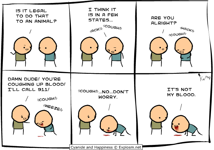 Revived on Facebook recently, this 2/20/12 Cyanide and Happiness cartoon by Jay A.: