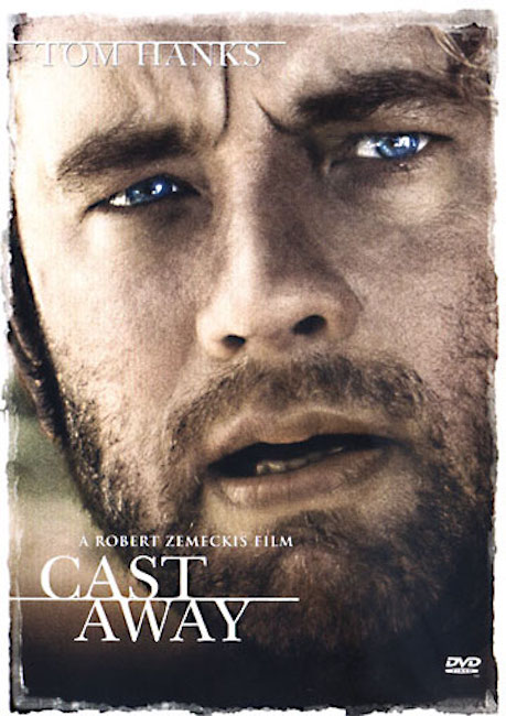 (#2) Theatrical poster for the movie; note Tom Hanks’s name above the name of the director and title (it’s all about Hanks)In Cast Away, Tom Hanks is hardly credible as a man surviving alone on a desert island and the movie itself is beyond belief. We are only really interested in two things: how he copes with the first day, and how he gets rescued on the last. Too many movie characters nowadays go on as though they can’t wait to be movie characters.
