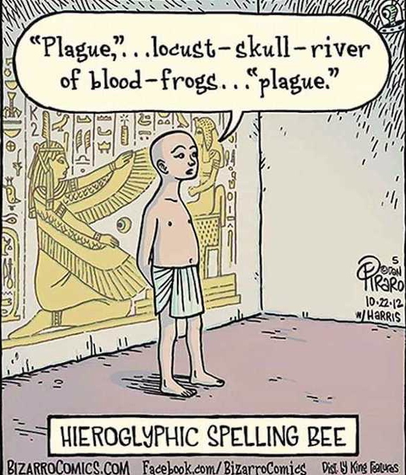 Bonuses. Piraro has turned to hieroglyphic writing for humor on at least two other occasions.
