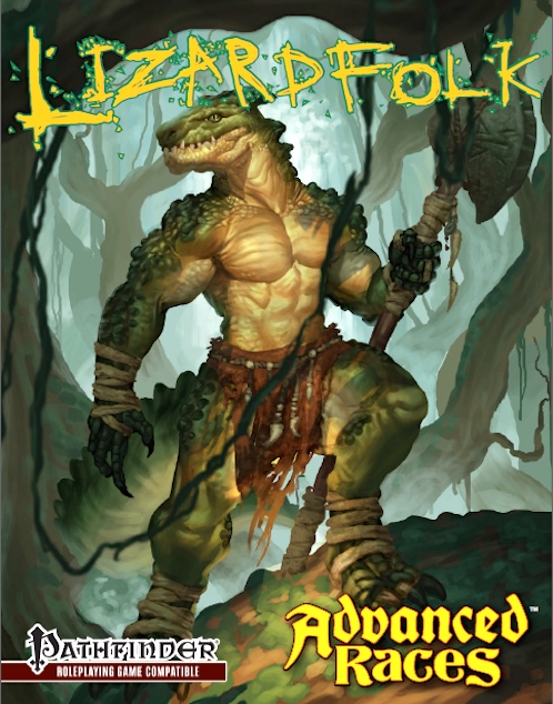 (This treats the lizardfolk not as humanoid lizards, but as sauroid humans — in any case, hybrids.)