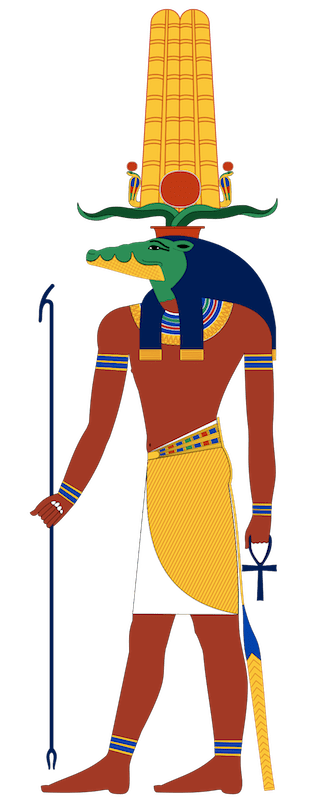 Sobek (also called Sebek, Sochet, Sobk, and Sobki), in Greek, Suchos (Σοῦχος) and from Latin Suchus, was an ancient Egyptian deity with a complex and fluid nature. He is associated with the Nile crocodile or the West African crocodile and is represented either in its form or as a human with a crocodile head. Sobek was also associated with pharaonic power, fertility, and military prowess, but served additionally as a protective deity with apotropaic qualities [averting evil influences or bad luck], invoked particularly for protection against the dangers presented by the Nile.
