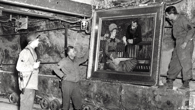 The photo: why this photo? I conclude that #1 is just a photo that the Economist‘s editors found in the gigantic Getty archives and plugged into their African art restitution story, without any context or any background information — without any human or artistic or historical particularity — to convey something like: Oh, the African story we’re talking about is sort of like the Nazis looting art from Jews, so here’s a generic photo of an artwork that the Nazis salted away during the war. They don’t tell us (no doubt they don’t know) what painting it is or who owned it before — was it in fact stolen from Jewish owners? — or what happened to it after.