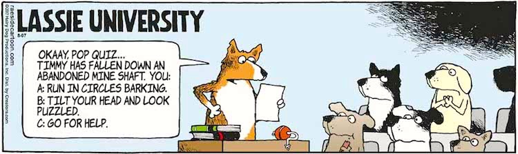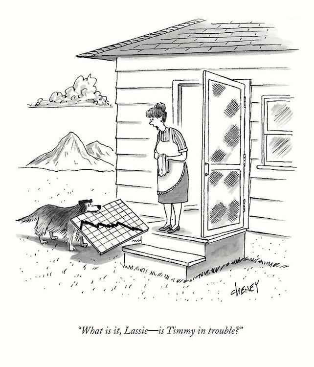 The Timmy-Lassie cartoon meme. A wonderfully rich vein of cartoons. I posted a Danny Shanahan on this blog back in 2012: