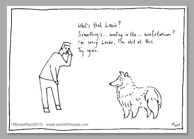 (#6) Harry Bliss: Lassie’s interlocutor devises his own very complex message
