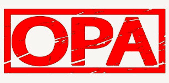 Digression on OPA. Further into the weeds. The acronym OPA, pronounced /ópǝ/, evokes two homonyms (and any number of initialistic abbreviations, for example OPA the US Office of Price Administration).