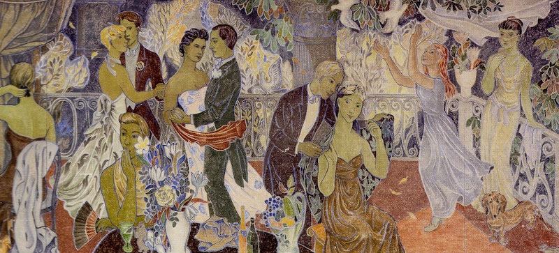 A few years after #1, and already into Moomin times (the first Moomintroll book was published in 1945), this 1947 wall mural “Party in the City”, reproduced on the Card Alley 6 site: