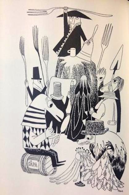 And one of Jansson’s illustrations for a Swedish translation of Lewis Carroll’s The Hunting of the Snark:
