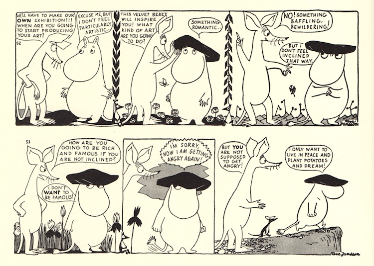 And then a cartoon in which prospective artist Moomintroll pleads to have a little peace: