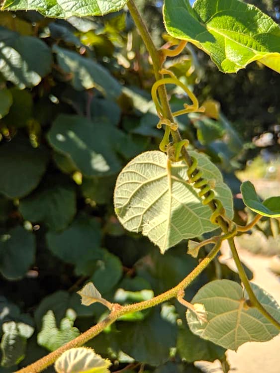 Close-up of GG’s kiwi vines competing with one another: