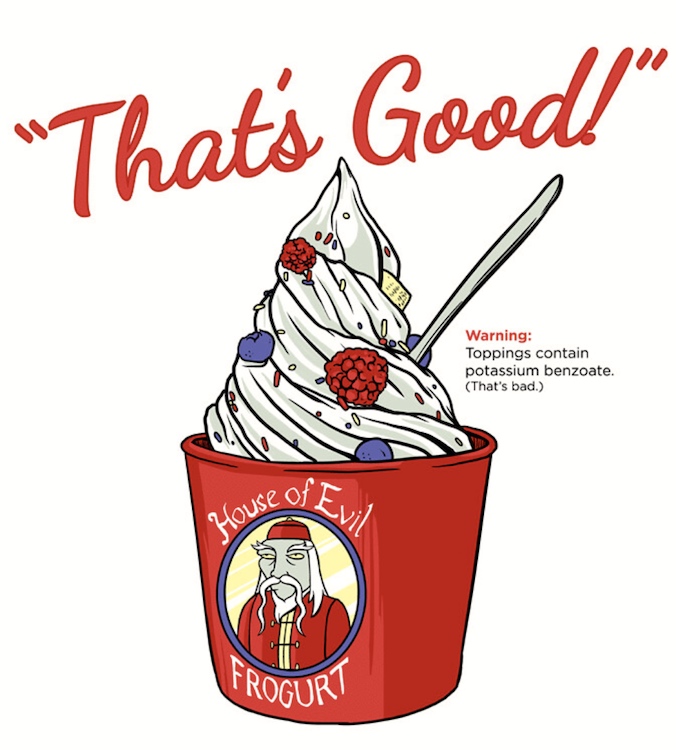 Owner: The toppings contains [the food preservative] potassium benzoate. [Homer stares, confused] That’s bad.