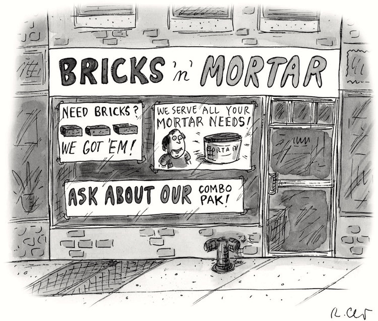 Here’s a piece of the Wikipedia entry, devoted to explicating the opposition between brick and mortar and online, while cagily avoiding giving anything like definitions: