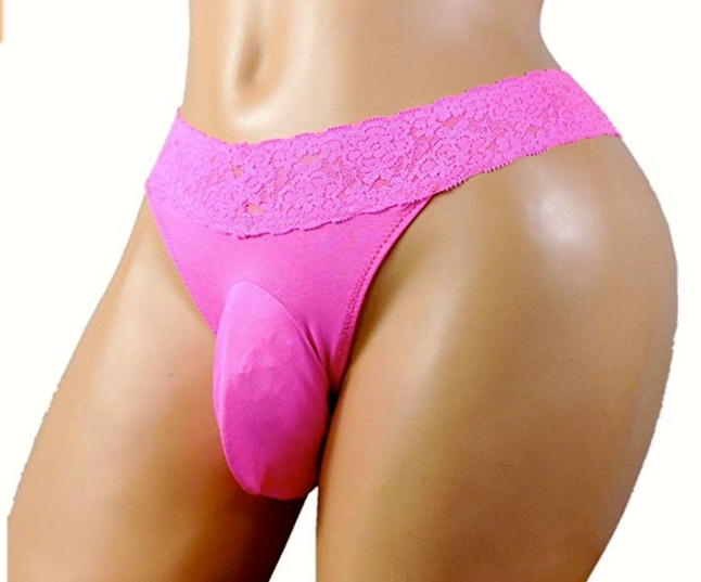 Some years ago I made the acquaintance of a young man — call him Todd — for whom this would have been the absolutely perfect piece of underwear. Todd was fond of wearing pink lace panties, but lamented not being able to find ones that allowed him to comfortably display his fairly sizable dick, of which he was both fond and proud. (He settled on women’s panties in large sizes, but they really weren’t the objects of his undergarment desire.)
