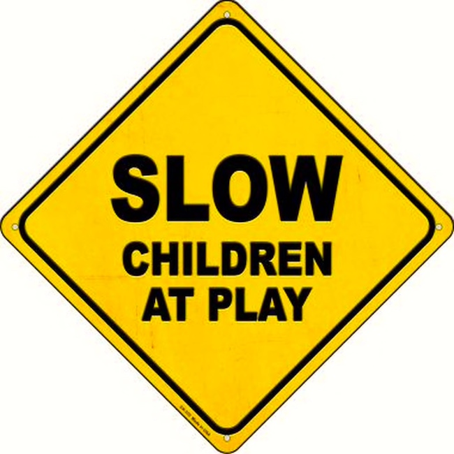 Yes, of course, this is only a potential ambiguity. The slow children interpretation is unlikely in ordinary contexts, so the sign is understood as an ordinary SLOW sign with an explanation for the injunction attached.