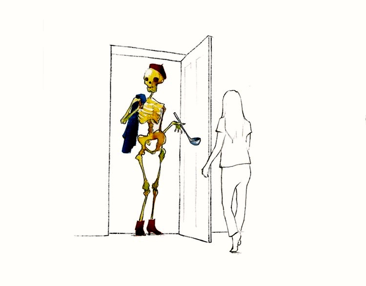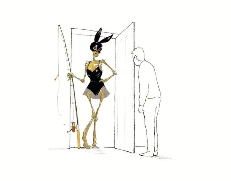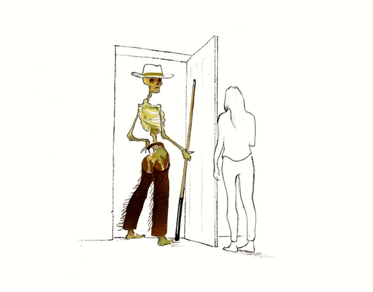 For the dead season, Grim Reaper cartoons from Will McPhail. For today, Halloween, the GR goes trick-or-treating in the city: