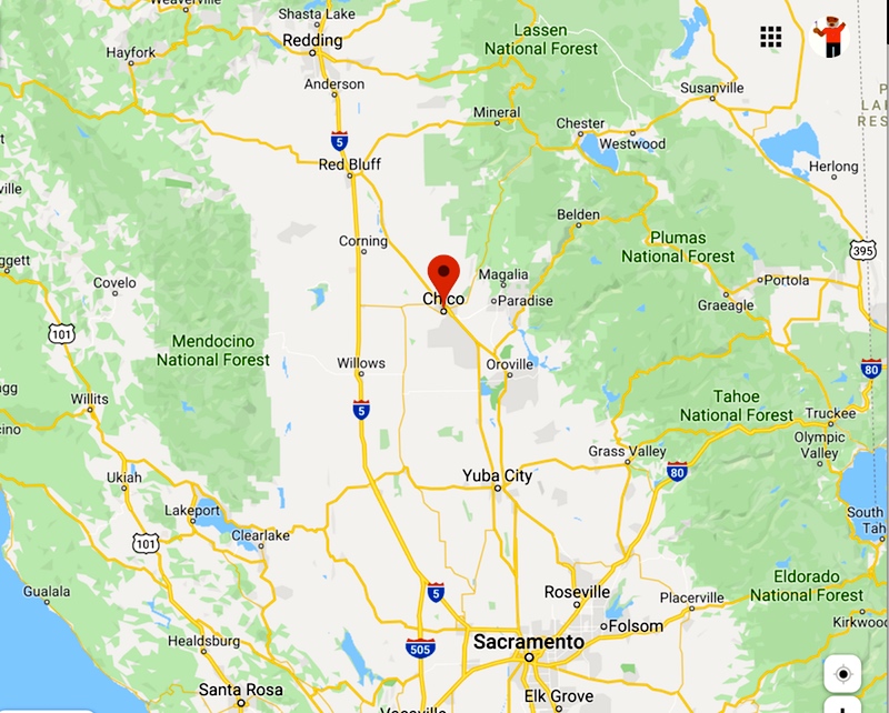 This, too, is now-famous wildfire territory. Chico, in particular, is the place people fled to when the town of Paradise (to the east) was leveled in the 2018 Camp Fire, the deadliest and most destructive wildfire in California history.