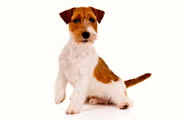 (#5) A Russell terrier, as in #1; photo from the AKC site on the breedThe Russell Terrier is a predominantly white working terrier with an instinct to hunt prey underground. The breed was derived from Jack Russell’s working terrier strains that were used in the 19th century for fox hunting. Russell’s fox working strains were much smaller than the Show Fox Terrier and remained working terriers. The size of the Russell Terrier (10″ to 12″) combined with a small flexible, spannable chest makes it an ideal size to work efficiently underground. Their unique rectangular body shape with the body being of slightly longer length than the leg makes them distinctly different from the Parson Russell Terrier and the Jack Russell Terrier of the Jack Russell Terrier Club of America (JRTCA).