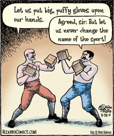 In any case, from this verb, we get the nouns boxing (referring to the sport) and boxer (referring to a competitor in the sport). So the way is open for jokes about boxing on Boxing Day.
