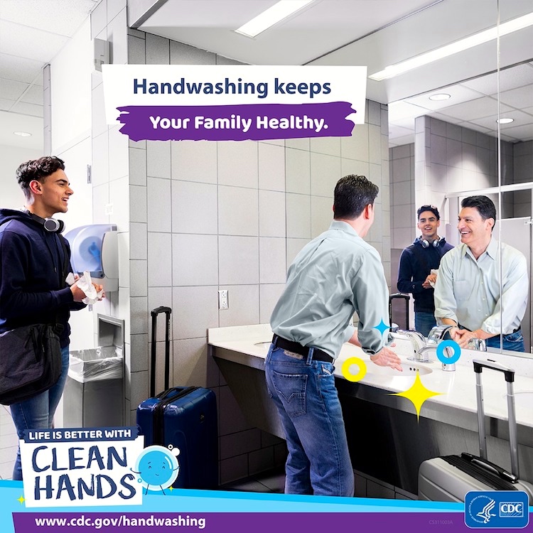 (#1) One in a recent series of CDC Clean Hands ads. I have no idea what the CDC intended the heavy circle and 4-point starburst symbols to convey, or the color difference between yellow and blue (some of the ads have white symbols as well), though they do seem to associate that shade of blue with cleanliness (in a simple world of binary symbol distinctions, that would associate the bright yellow color with dirtiness — but for what purpose, I have no idea)