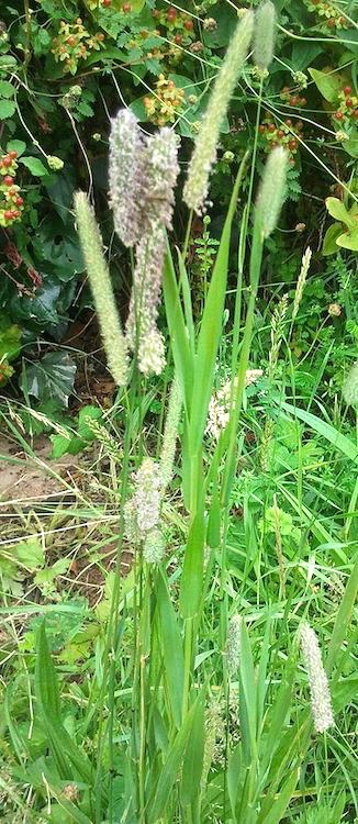Timothy blooms in spikes of florets (which then bear the seeds), so the plant is naturally phallic. Occasionally quite vividly, as in this photo of one spike curved down like a half-hard dick: