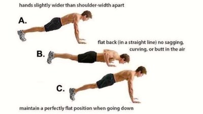 For comparison, first, an illustration of good form for pushups: