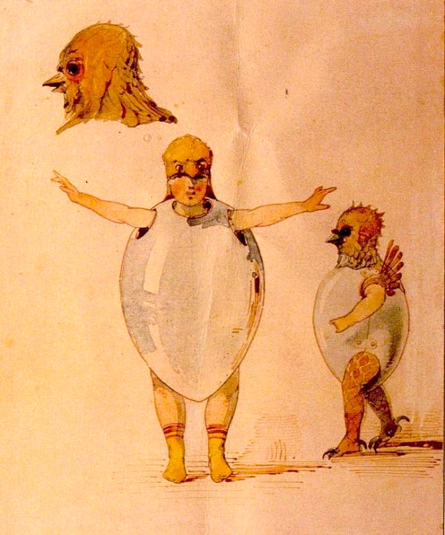 (#2) The Hartmann Chicks sketchHartmann made 17 sketches for the Ballet “Trilby”, which was based on the short story by French author Charles Nodier. The ballet featured the children of the Imperial Ballet School, and costumes were designed for them to look like butterflies, birds, and unhatched chicks.