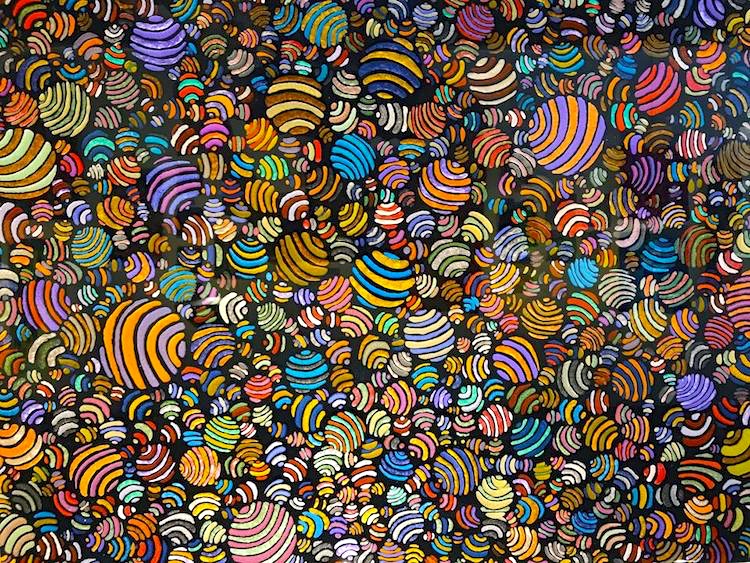 “Expanded Perception” was began this year, specifically for Art Basel, to gain a deeper understanding within multi-planed works of art and the effects of psychedelic color combinations would have on the subject. Each of these works are multiple layers, with some having as many as ten, or others having as few as four. Within each layer, a meticulous amount of paint is added to the resin coats and through the usage of a size 0 or 00 brush, it is very carefully added to the wood panel or resin to keep the shape that was created from diverging out of its boundaries within my own imagination.  Much like all my works, these works are part of the “op art” movement that allows movement within a static piece, so the overall visual appearance is more kinetic in nature.