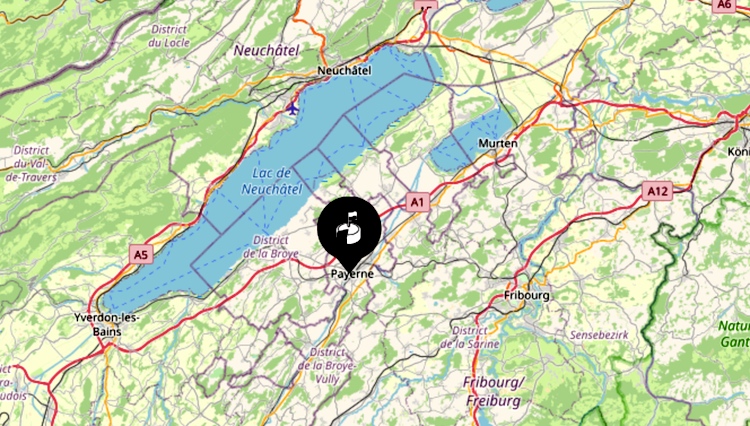 (#7) Map showing the town of Payerne (population ca. 10,000); Estavayer-le-Lac (on the banks of the lake) has ca. 6,000 residents