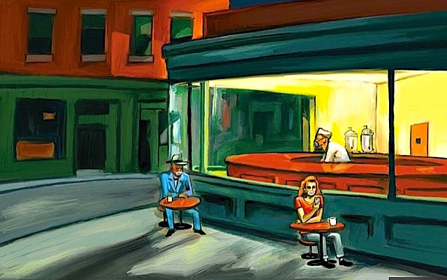 Phase I: life on pause, in lockdown. Dozens of people have varied Nighthawks for pandemic times by eliminating all the human characters. One of these: