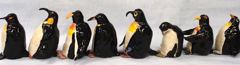(#1) [From the site:] “Nineteen clay modelled penguins make up our march…inspired by our studies into penguins using BBC film footage from ‘Spy in the Huddle’.”