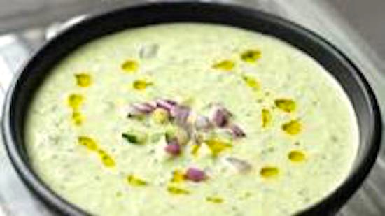 Kristin Bergen: Summertime, my breakfast is salty lassi with a cucumber tossed in it. Also cold cucumber yogurt soup with dill and toasted walnuts