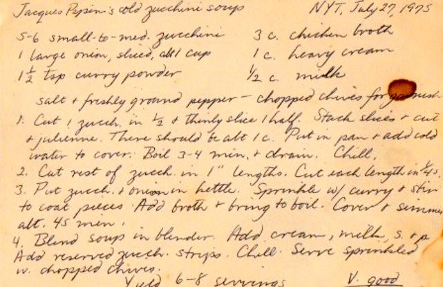— Cold zucchini soup, from the New York Times of 7/27/75: