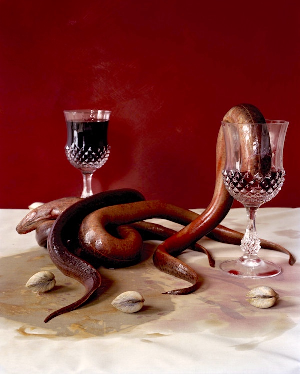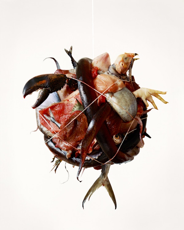 Photographer Tara Sellios is more than aware of this peculiar phenomenon, using it to lure unsuspecting viewers into her twisted Baroque still lifes. A contemporary take on the art historical vanitas tradition, Sellios’ eerie photographs are sumptuous reminders of our mortality, at once unnerving and beguiling. Rotting meats, dangling sea creatures and overripe fruits mingle with gaudy goblets and elegant table settings in what looks like the place setting for a surrealist “Last Supper.”