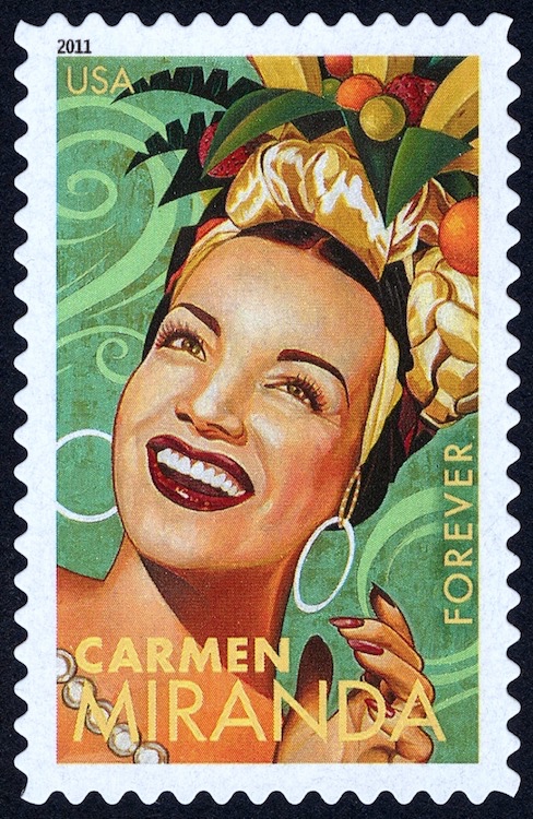 Miranda in one of her fruit hats on a 2011 U.S. commemorative stamp: