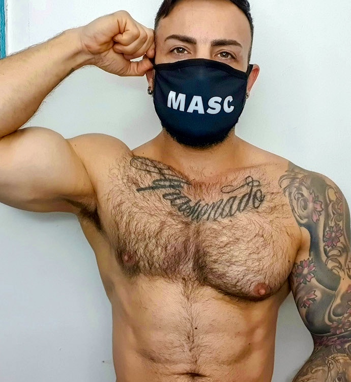 (#1) A bit of word play on mask and masc(uline), underwear models being chosen for their projection of high masculinity (as here)