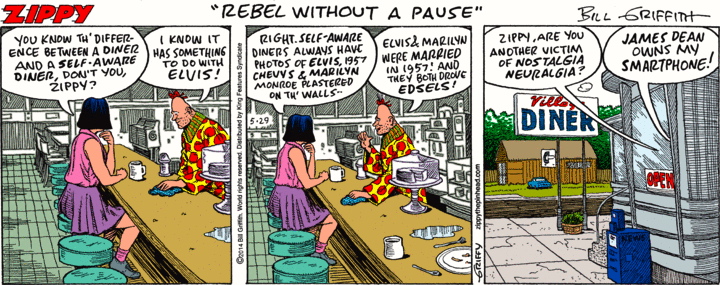 (#2) A Zippy set in a diner (with Elvis, Marilyn, and James Dean in guest roles). But which diner?
