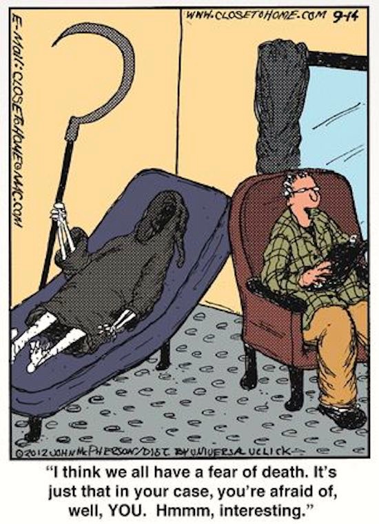 Meanwhile, Grim Reaper cartoons are something of a specialty in Bizarro. Here are two that haven’t already been posted: