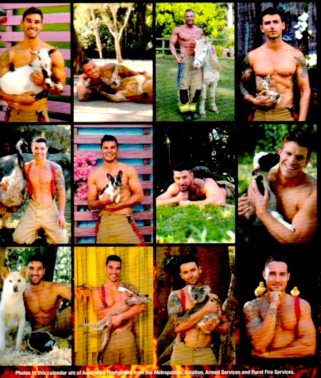 About the calendars. From the Fox News site, “2021 Australian Firefighter Calendars, featuring shirtless men, will benefit displaced wildlife: This year, there are six different Australian Firefighter Calendars to choose from — including four shirtless versions” — by Michael Bartiromo on 10/22/20: