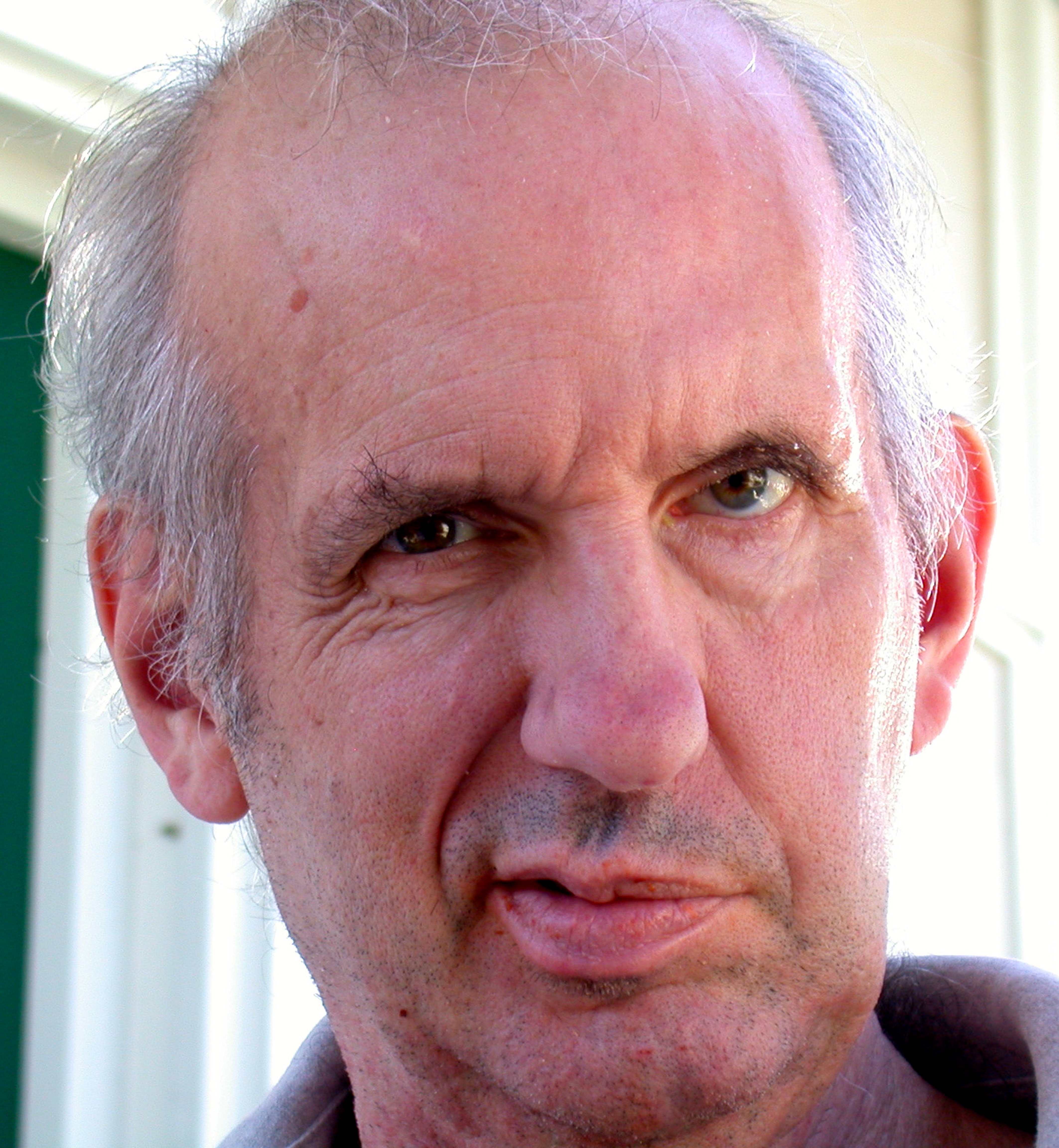 Now go to #1. The left side of his face is not merely relaxed, it’s drooping. Again, almost all the muscle action is on the right side of his face, and what’s going on is consistent with his staring intently at the viewer, but it looks even more like a half-smile; certainly, it’s no scowl.