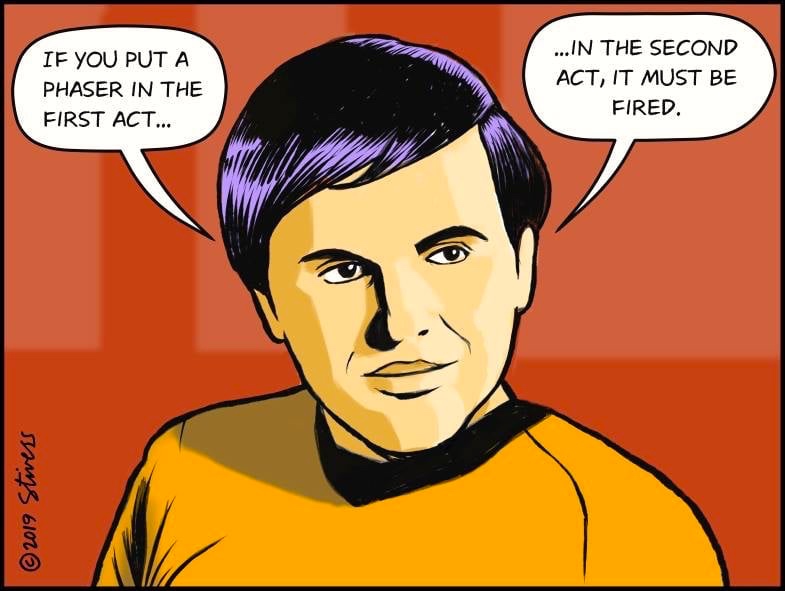 Two contributions to the cartoon: a dramatic principle; and the Star Trek tv shows and movies.