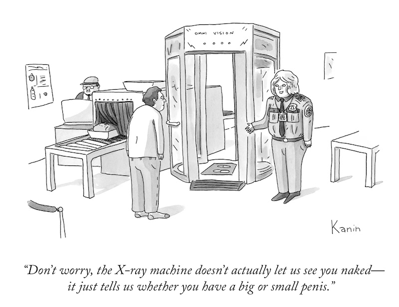 The penis-exposure machine. A kind of masculine nightmare version of the airport scanner machine. The Kanin cartoon: