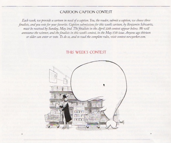 […] on this blog, in the 4/23/21 posting “Size cartoons”, about a Benjamin Schwartz drawing for the New Yorker cartoon caption […]